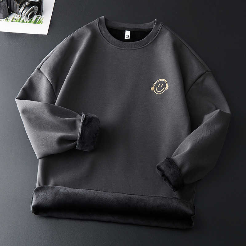 - 冬季新款加绒加厚保暖圆领卫衣男锁宽松舒适内搭上衣男士