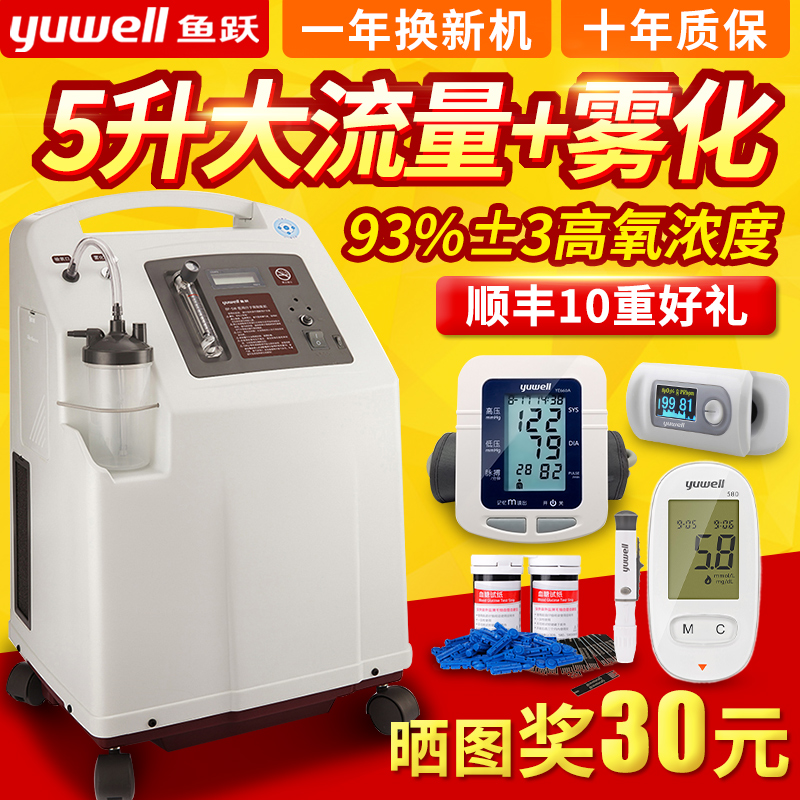 - 鱼跃制氧机8F-5W医 用级老人吸氧器家用5L氧气机静音带雾化负离子