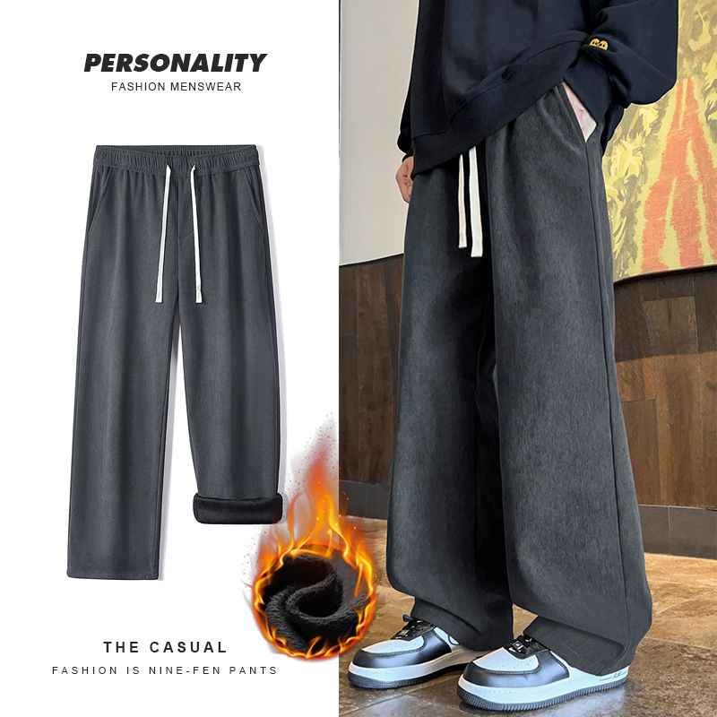 - 冬季加绒加厚休闲裤男宽松直筒拖地裤百搭保暖御寒休闲针织长裤男