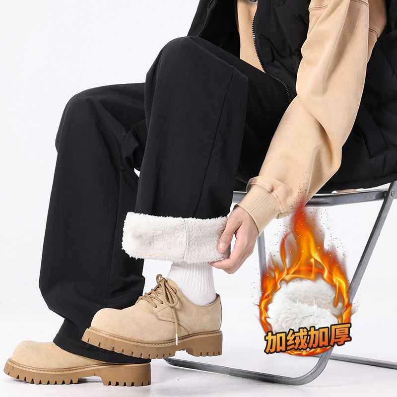 - 冬季保暖羊羔绒休闲裤子男宽松直筒百搭加厚加绒锁温御寒卫裤