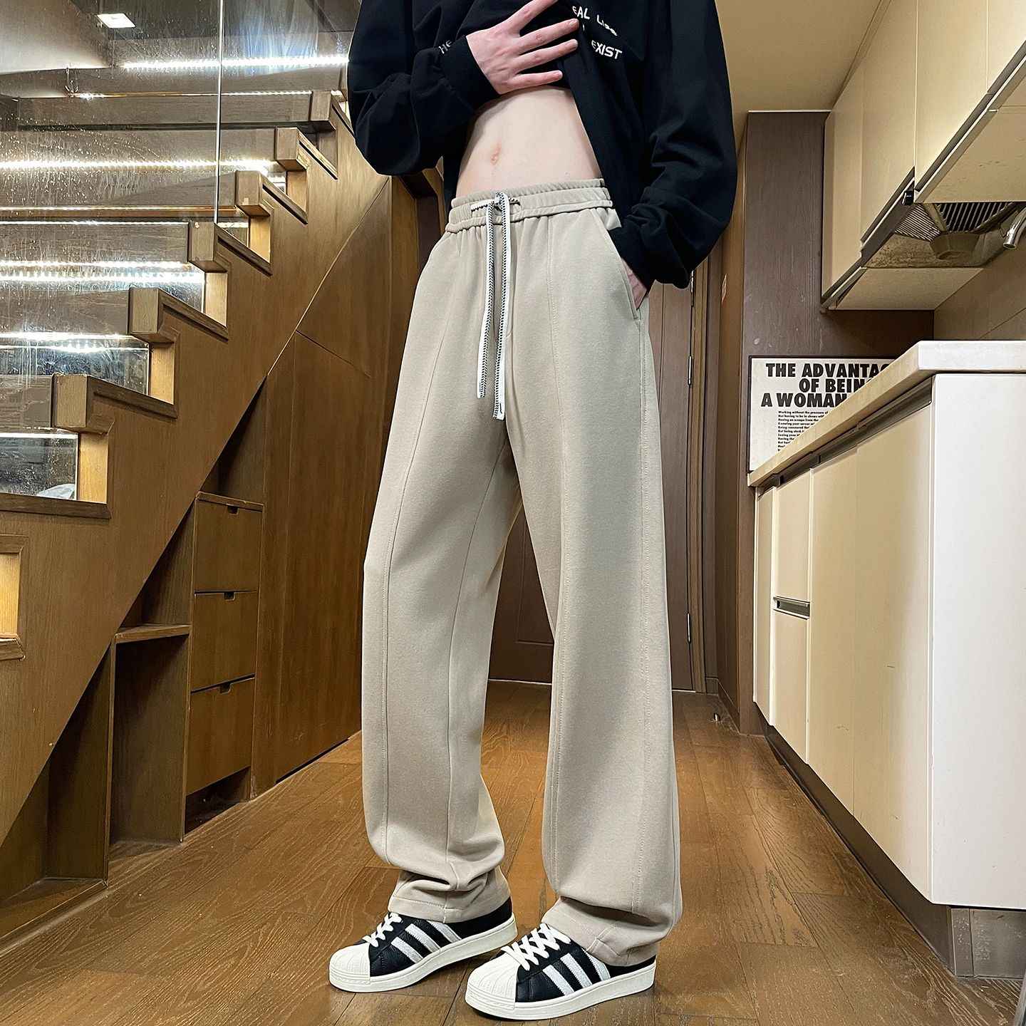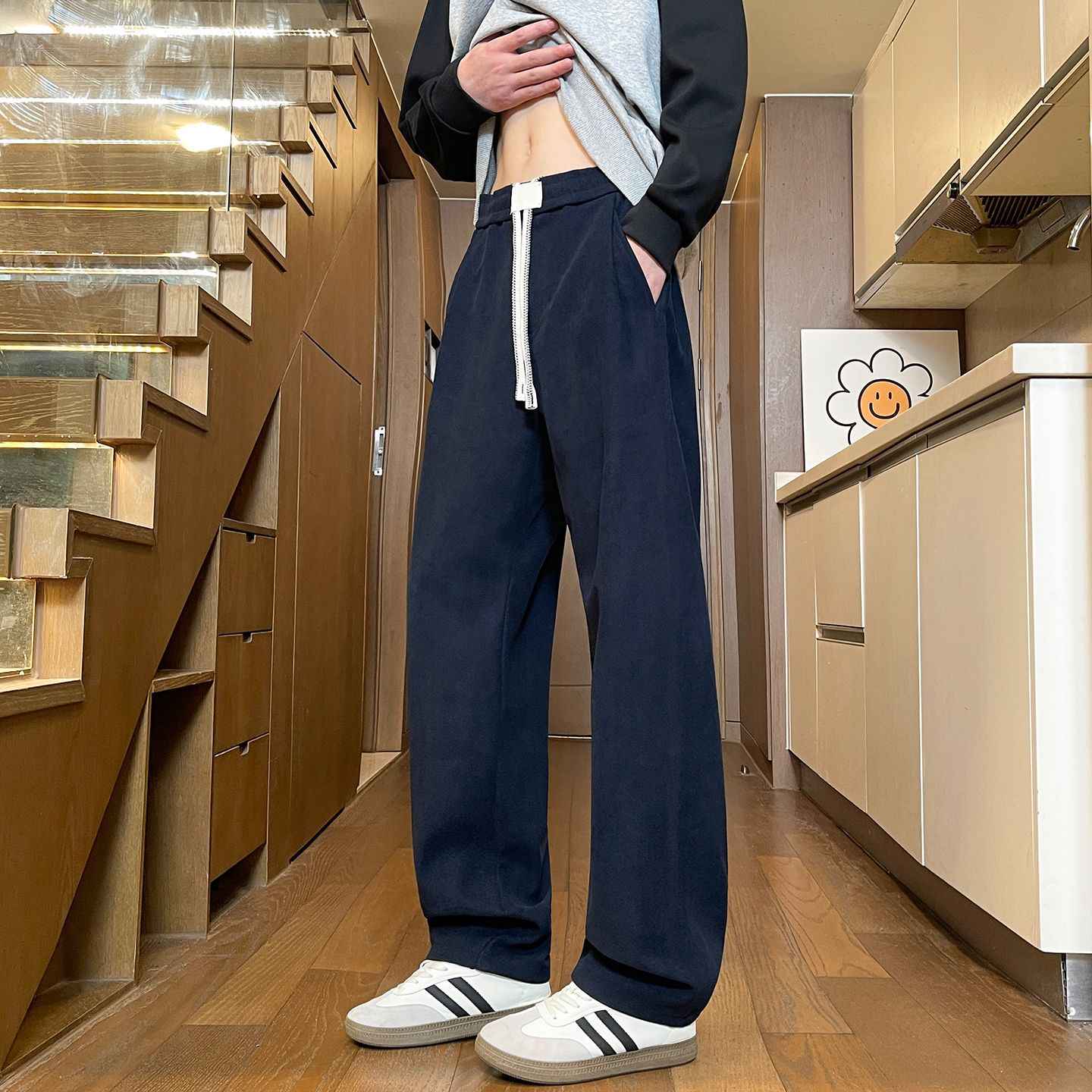 - 2025秋冬新款慵懒松弛感阔腿裤男宽松舒适垂感直筒裤休闲裤卫裤