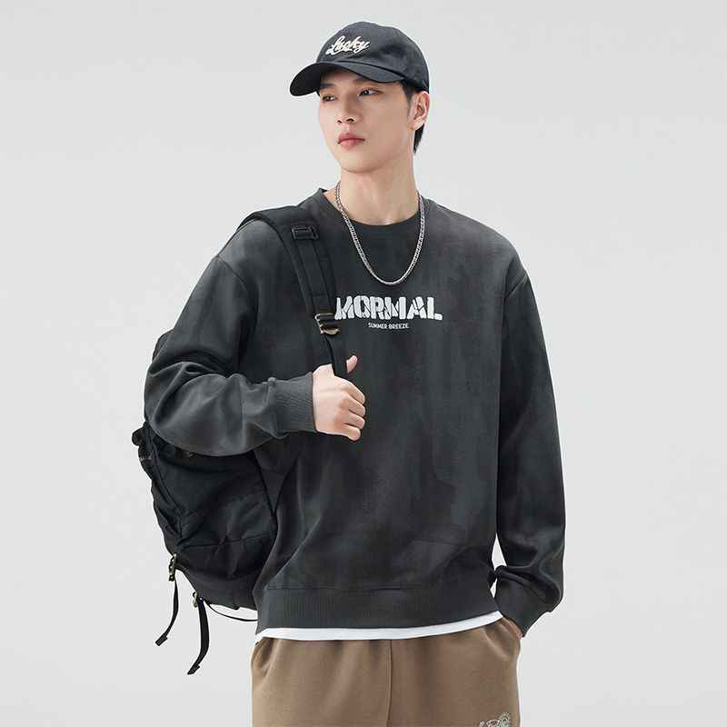 - 2025秋季新款潮牌圆领卫衣男简约潮流百搭纯棉套头长袖T恤男