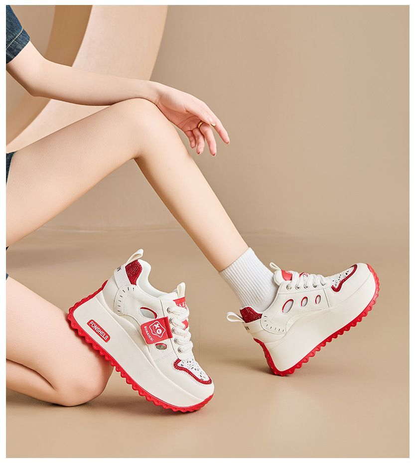 - 鞋子女2026春夏休闲单鞋内增高女鞋厚底女式阿甘鞋透气镂空小白鞋